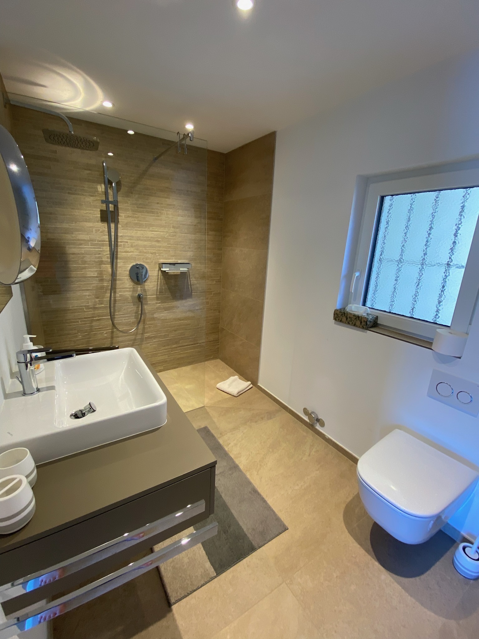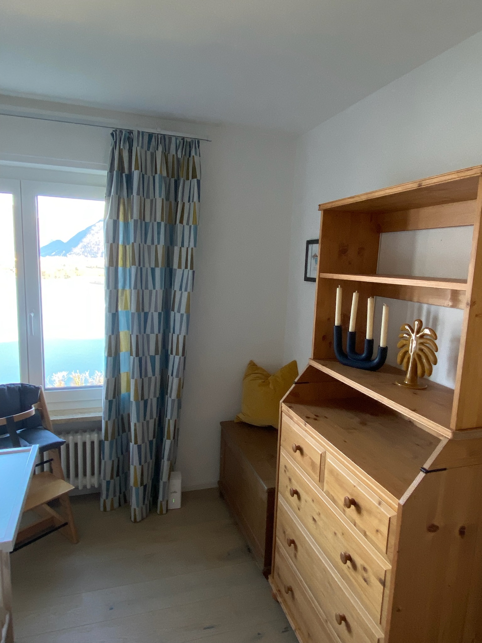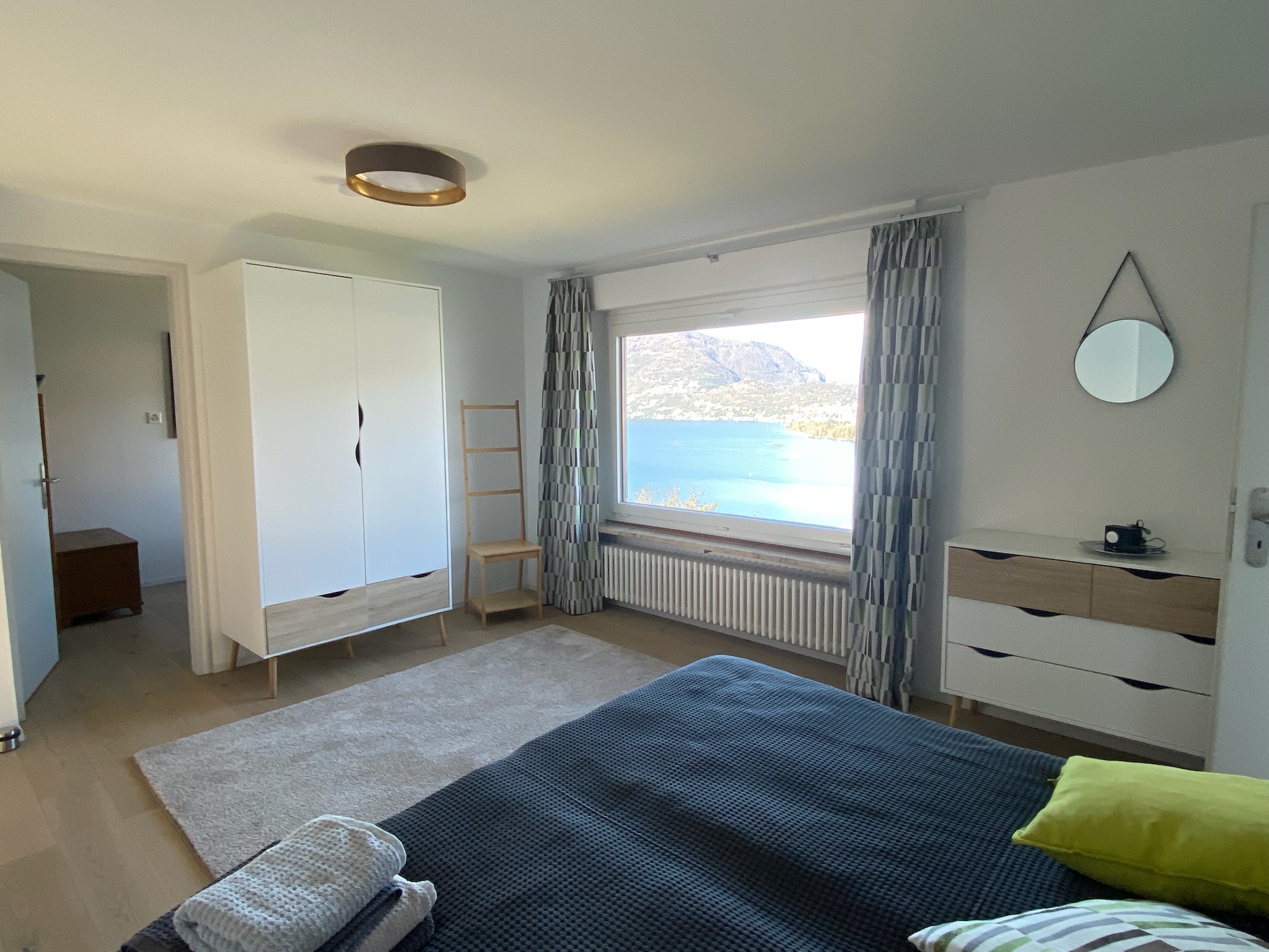 Unser Apartment bietet alles, was Sie für einen erholsamen Aufenthalt am Lago Maggiore benötigen. Das gemütliche Schlafzimmer ist mit einem komfortablen Doppelbett (180 x 200) ausgestattet – Einschlafen und Aufwachen mit Panorama Seeblick! Das geräumige Badezimmer im Schlafbereich bietet eine begehbare Regendusche und wird durch ein zusätzliches Gäste-WC im Eingang ergänzt.
